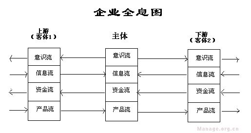 任何一個(gè)企業(yè)(主體)首先需要明確自己經(jīng)營(yíng)的是什么產(chǎn)品,該產(chǎn)品可以是成型的產(chǎn)品或僅僅是一個(gè)產(chǎn)品概念。有了這個(gè)產(chǎn)品(或概念)之后,主體的意識(shí)流朝上下游輻射,搜集與產(chǎn)品有關(guān)的所有信息,當(dāng)足夠的信息匯聚于主體之后,主體控制資金流向上游,通過資金流使產(chǎn)品流向自己并向下游流去,后使資金從下游返回,完成一個(gè)循環(huán)。