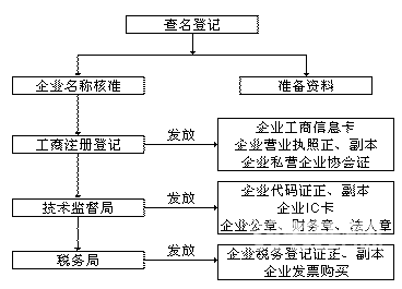 核名稱(chēng)—開(kāi)驗(yàn)資戶(hù)——存注冊(cè)資金——驗(yàn)資——交工商設(shè)立資料——拿營(yíng)業(yè)執(zhí)照—— 刻章——辦組織機(jī)構(gòu)代碼證——辦稅務(wù)登記證——開(kāi)基本戶(hù)(納稅戶(hù))。