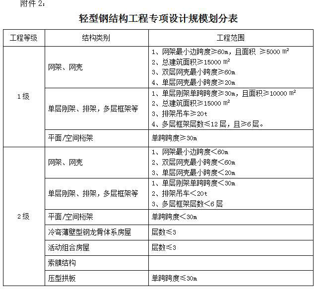 附件2:輕型鋼結(jié)構(gòu)工程專項(xiàng)設(shè)計(jì)規(guī)模劃分表